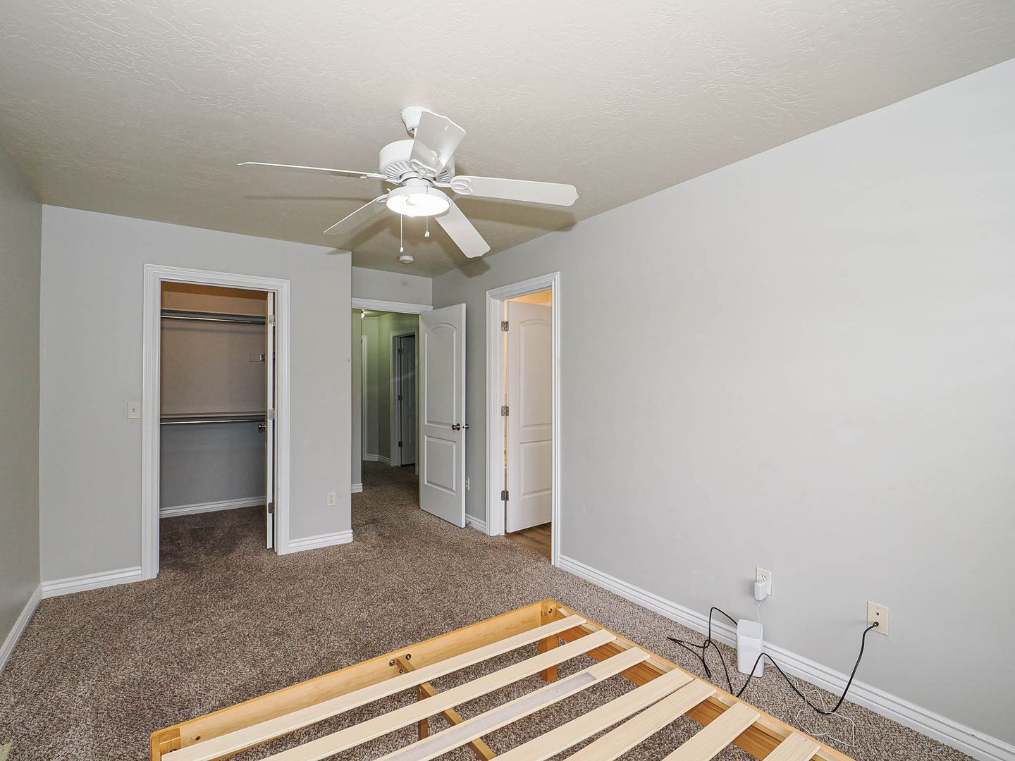 Enjoy comfort, privacy, and convenience in this private upstairs master suite located in a modern South Jordan townhome. The suite features a large walk-in closet and private ensuite bathroom with a standalone shower and soaking tub. A queen bed frame is available for your use, but the bedroom itself is otherwise unfurnished.