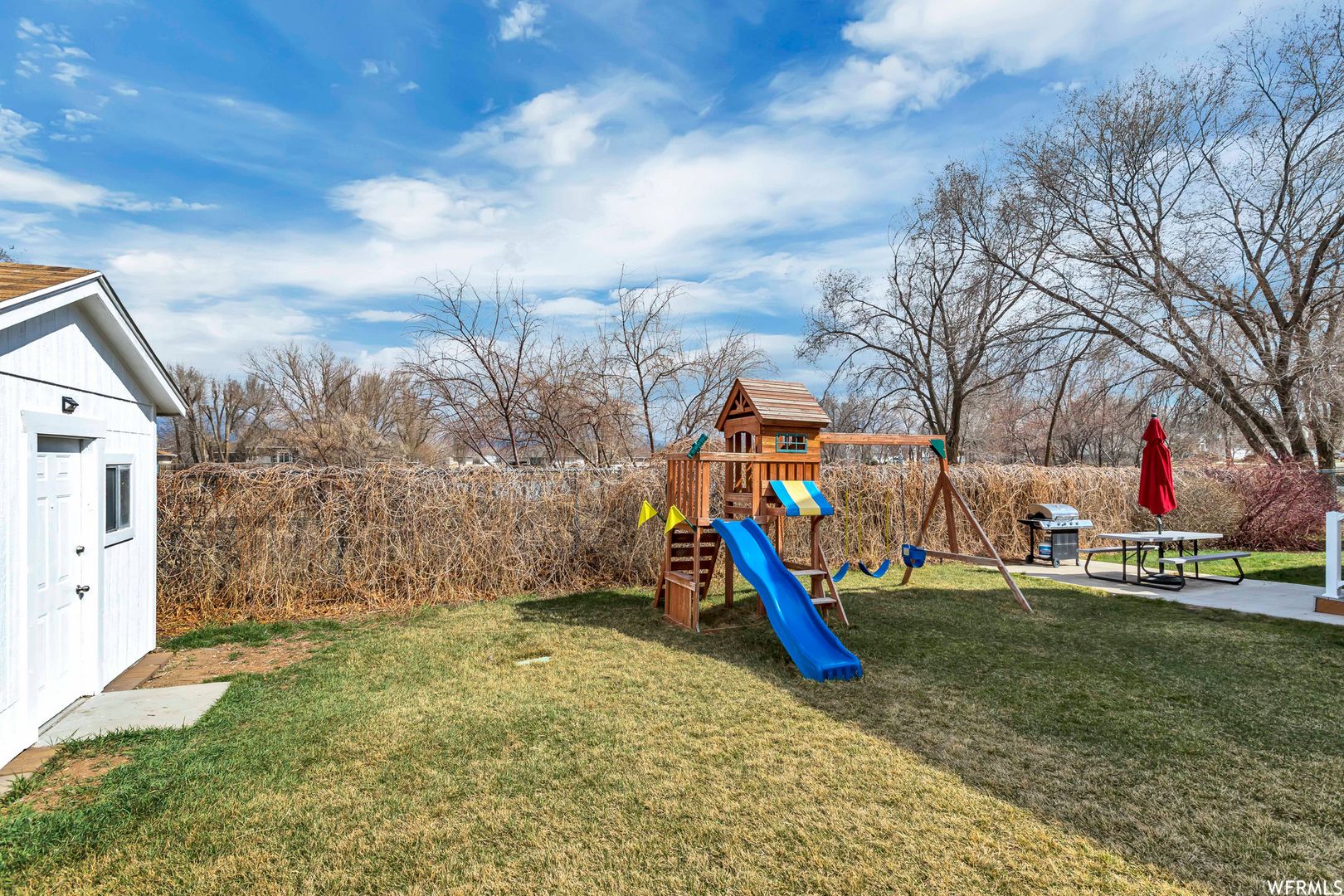 Spacious 5-bedroom, 2-bath home in West Jordan, UT, offering multiple living areas and tasteful accents throughout. The kitchen features stainless steel appliances and opens to a large yard with a fully fenced backyard, patio, and storage shed—ideal for outdoor use and storage. A 2-car garage provides covered parking and extra space. The property backs up to walking trails and a duck pond, creating a pleasant natural backdrop.